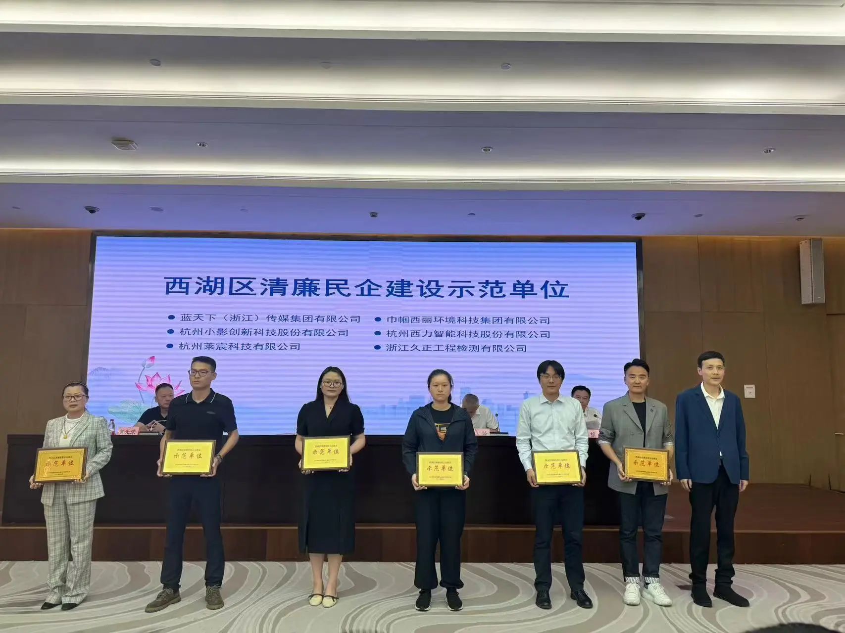 會(huì)議通報(bào)了2023年度西湖區(qū)清廉民企建設(shè)示范單位名單,并為西力科技在內(nèi)的18家清廉民企建設(shè)示范單位授牌。