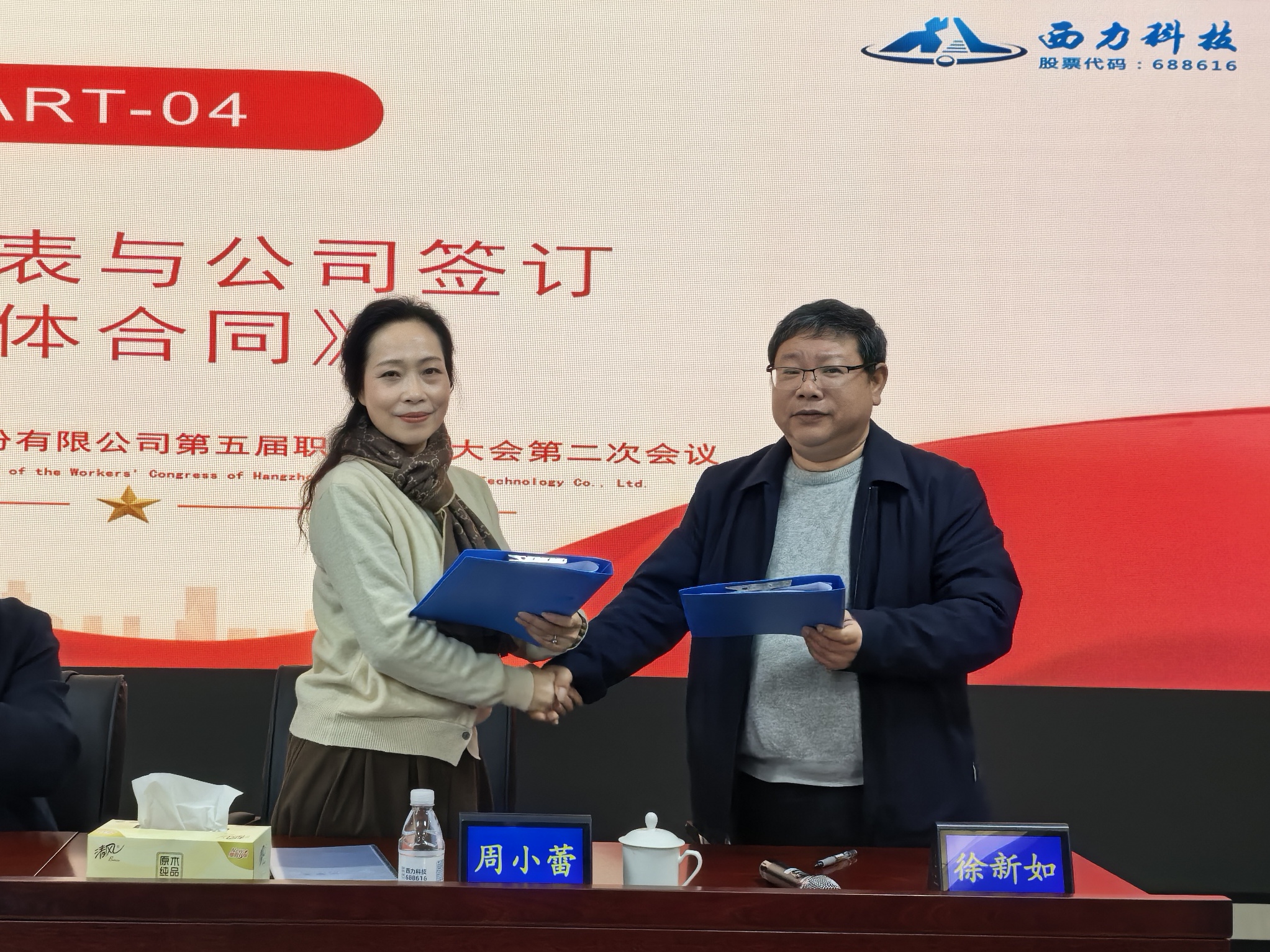 全體參會代表經過認真審議,最后以舉手投票表決方式全票通過了各項規章制度和集體合同草案,工會主席徐新如和公司總經理周小蕾分別代表職工方和企業方簽訂了集體合同。這些制度合同將于2025年3月15日起正式執行,將為公司未來的規范化管理和職工權益保障提供標準依據和有力支持。