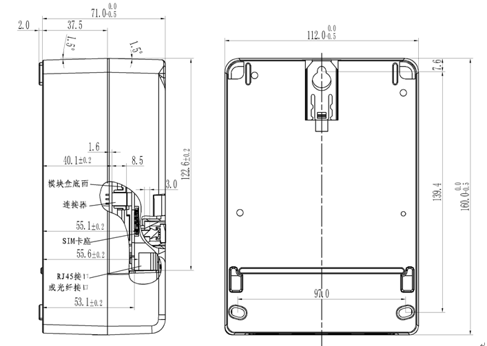 外形尺寸 160 mm (高)×112mm(寬)×71mm(厚)