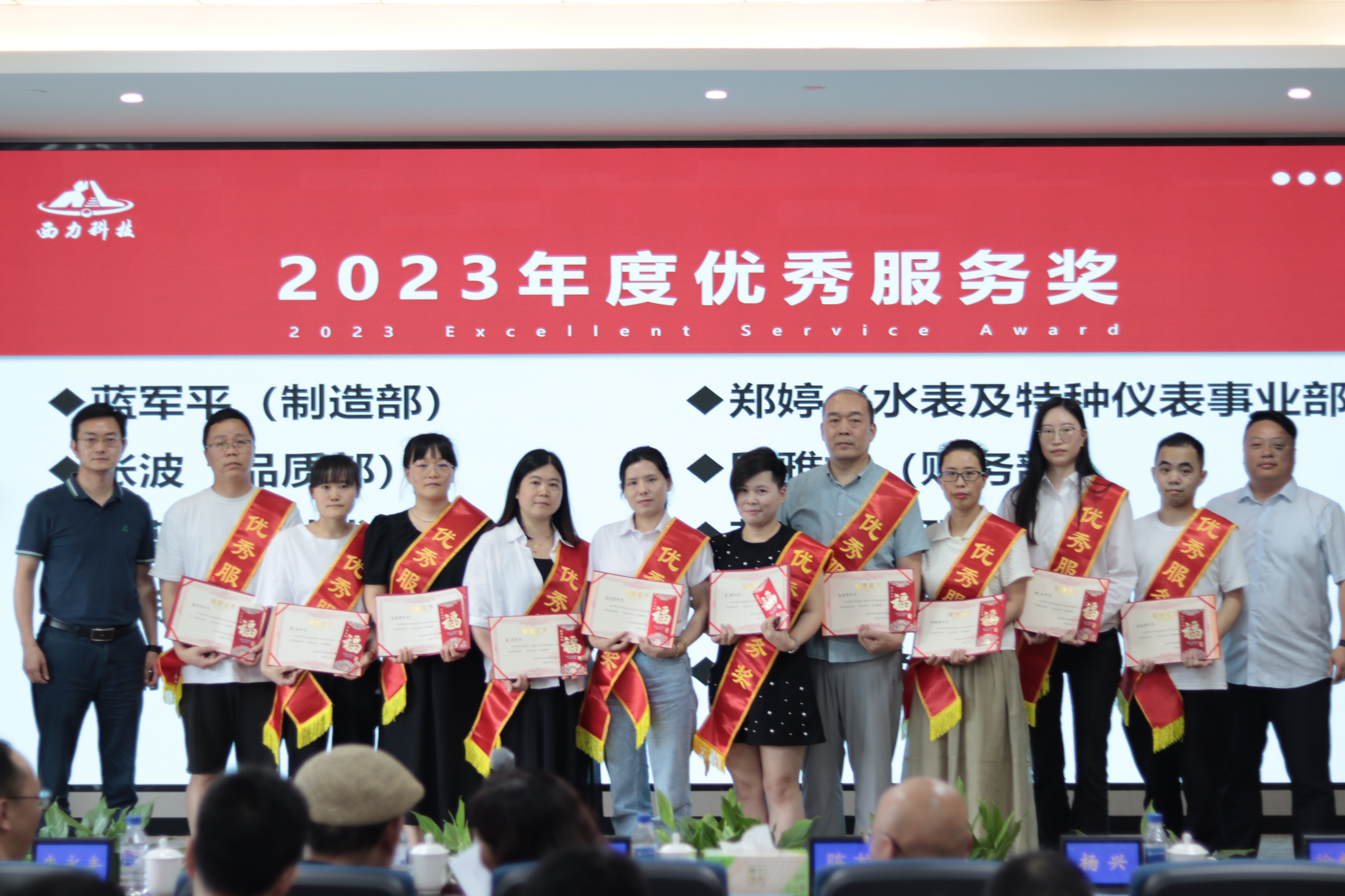 常務副總朱永豐宣讀了杭州西力智能科技股份有限公司和浙江西力智能科技有限公司《2023年度先進表彰文件》,參會領導對先進團隊與獲獎人員進行了頒獎表彰。