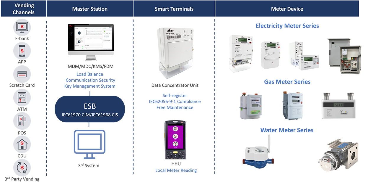 Suitable for sub-metering community. The countries or areas under the unified administrator of water, electricity and gas.